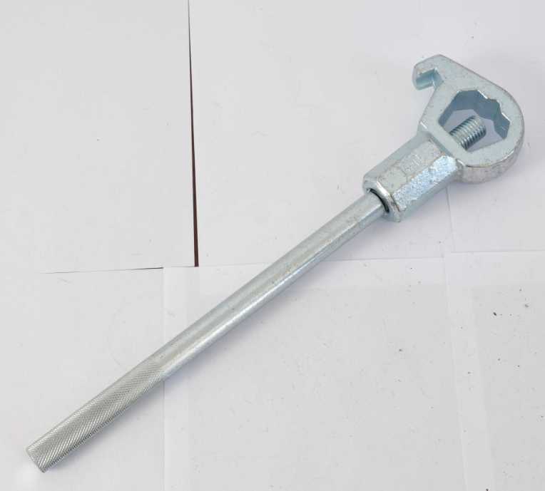 Adj. Wrench Hidrant: Pemegang Keluli. Kepala besi tuang. 1 1/4 "Max Pentagon Open-ing untuk pin atau rocker lug melalui 3".