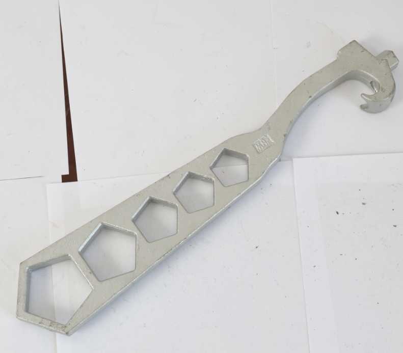 Tugas berat adj. Wrench Hidrant: Kepala besi tuang, pemegang keluli. Untuk kacang Pentagon hingga 1 3/4 "Spanner untuk pin dan rocker lugs 1 1/2" ~ 6 ".